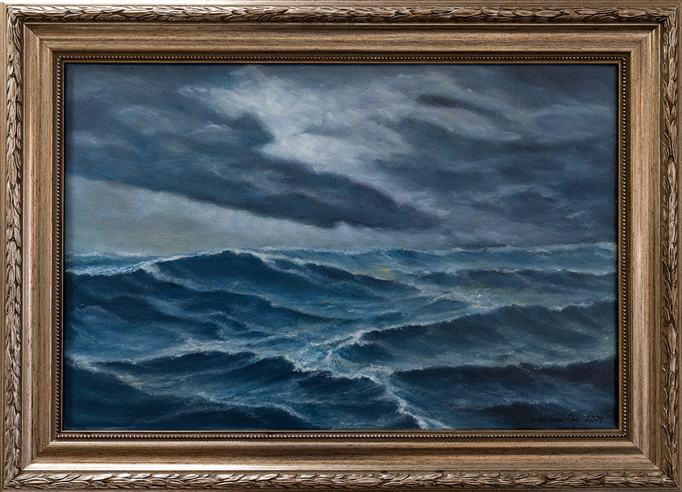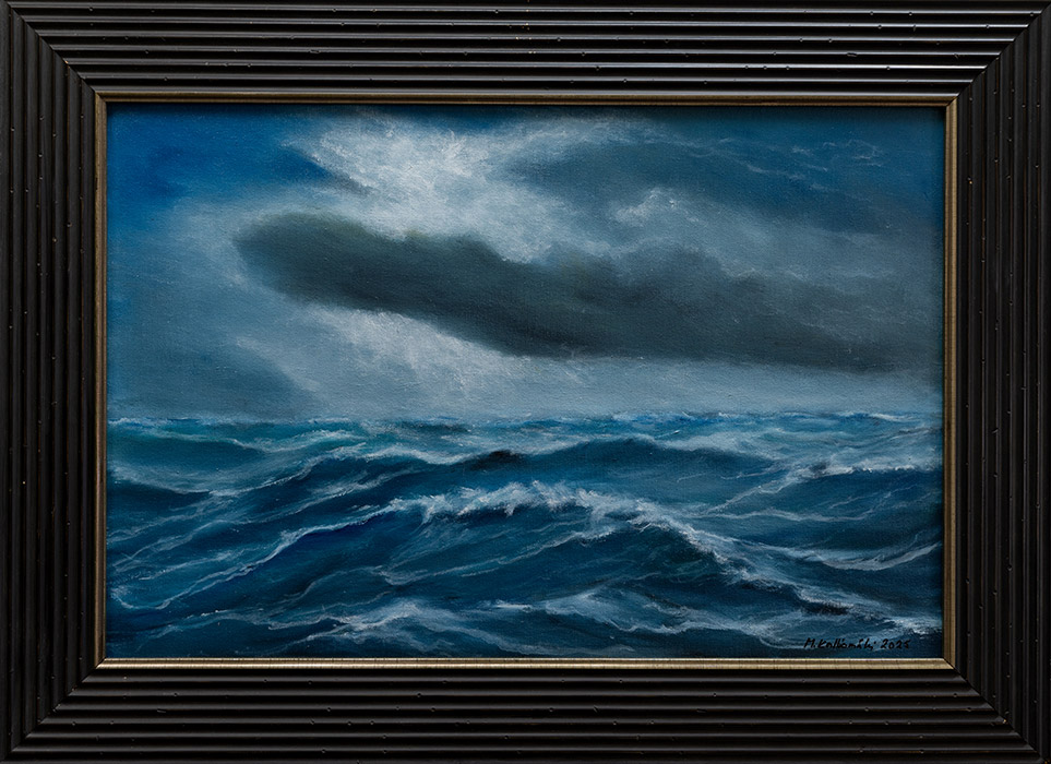 Öljyvärit ovat hänen ilmaisunsa väline. Niiden syvyys ja pehmeys sopivat juuri siihen, mitä hän haluaa kuvata: merellisiä näkymiä, valon ja varjon vaihtelua, aaltojen liikettä ja hiljaisia hetkiä. Maurille meri ei ole koskaan vain vettä ja horisonttia. Se muuttuu jatkuvasti – paikasta, ajasta ja säästä riippuen – ja juuri siinä piilee sen viehätys. Se on rauhallinen ja arvaamaton, tuttu mutta alati uusi.